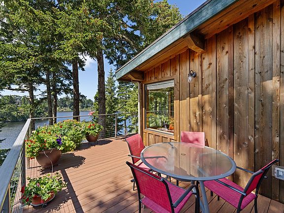 EXPERIENCE LAKEFRONT LIVING AT FLORAS LAKE! Step into a CONTEMPORARY HAVEN that combines LUXURY with COMFORT. This exceptional property offers 2,558sf of modern updates and a meticulously designed 540sf detached GUEST STUDIO featuring a MURPHY BED, FULL BATH, and LAUNDRY ROOM. The MAIN RESIDENCE showcases a GENEROUS INTERIOR with a PRIMARY SUITE on the main level, TWO ADDITIONAL BEDROOMS, and TWO BATHROOMS. RELAX on EXPANSIVE DECKS with STUNNING VIEWS of Floras Lake, complemented by FINE FINISHES throughout. OUTDOOR ENTHUSIASTS will love the PRIVATE DOCK and LAKE ACCESS, perfect for WATER ACTIVITIES, along with a dedicated KAYAK SHED. The property boasts SOLID POST and BEAM CONSTRUCTION, enhancing both its APPEAL and DURABILITY. Floras Lake is a haven for WINDSURFING, KITEBOARDING, and FISHING, with opportunities to catch STOCKED and NATIVE TROUT, BASS, and the occasional STEELHEAD. Nestled just over the dune from the ocean, it offers a PEACEFUL RETREAT. Golf lovers will appreciate the close proximity to renowned courses, including Bandon Dunes Golf Course (30 minutes away) and the upcoming New River Dunes Golf Course (15 minutes away).Embrace the lifestyle of wind sports, kayaking, boating, and fishing right outside your door, and explore MILES OF PACIFIC SHORELINE for endless recreation. This lakeside retreat provides an unmatched opportunity to make unforgettable memories in an idyllic setting. DON'T MISS THE VIDEO/VIRTUAL TOUR OF THIS SLICE OF PARADISE ON THE SOUTHERN OREGON COAST!!