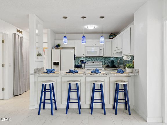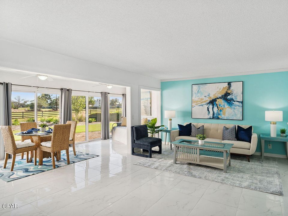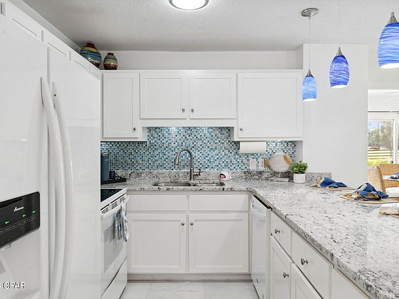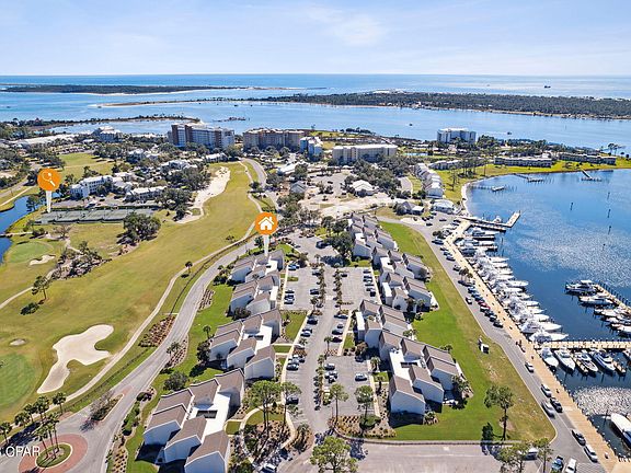 Discover this exquisite ground-floor harbor villa unit nestled within the exclusive Bay Point community. Enjoy golf course views from this stunning condo, which features a host of upgrades, including tile flooring, granite countertops, and modern fixtures. Convenience is at your fingertips with a fully equipped kitchen, washer and dryer, and furnished interiors, making it an excellent investment for short-term or long-term rentals. Tucked securely within Bay Point's gated community, you'll experience a range of top-notch amenities, including 24-hour roving security, a prestigious golf club featuring the exclusive Nicklaus Golf Course (the only one of its kind in Northwest Florida), Point South Marina, a state-of-the-art full service marina with a fuel dock and slips accommodating boats up to 120 feet, five HydroGrid Clay tennis courts, and an on-site USPS post office.