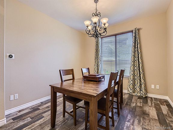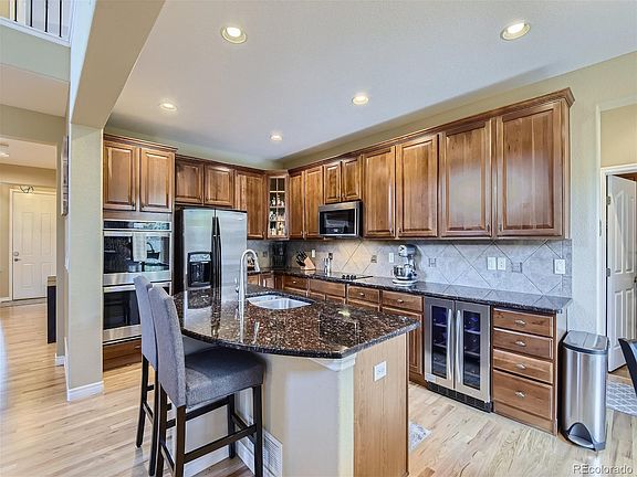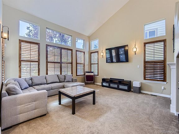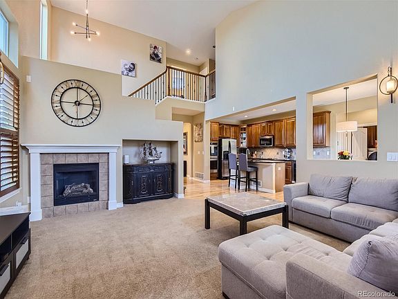 Welcome Home. This stunning 5-bedroom, 3-bathroom residence in the highly sought-after Hearth neighborhood exudes ownership pride throughout. 3 car tandem garage. The kitchen boasts granite countertops, a tile backsplash, double ovens, a stovetop, refrigerator, wine cooler, pantry, and extensive counter space. Updated Bathrooms throughout. The front office doubles as a mother-in-law suite, complete with a full-sized closet. The living room, seamlessly connected to the kitchen, is ideal for hosting gatherings. A full-sized bathroom is conveniently located on the main level. Upstairs, three bedrooms await, including the primary bedroom with an en suite 5-piece bathroom. The other two bedrooms share a Jack and Jill bathroom. The basement, recently finished by professionals, offers a prime entertainment space, complete with a pool/ping pong table and shuffleboard, all included with the home. Additionally, there's a charming kitchenette with another beverage fridge and quartz countertops. Another versatile room can serve as either a bedroom or theater room. Outside, the splendid Trex deck provides a perfect setting to enjoy Colorado's summer, overlooking a professionally landscaped backyard. Wooden shutters grace every window. Highlands Ranch is celebrated for its top-tier schools, ensuring premier education. Its proximity to Recreation Centers, trails, and parks affords a plethora of outdoor activities and recreation opportunities.