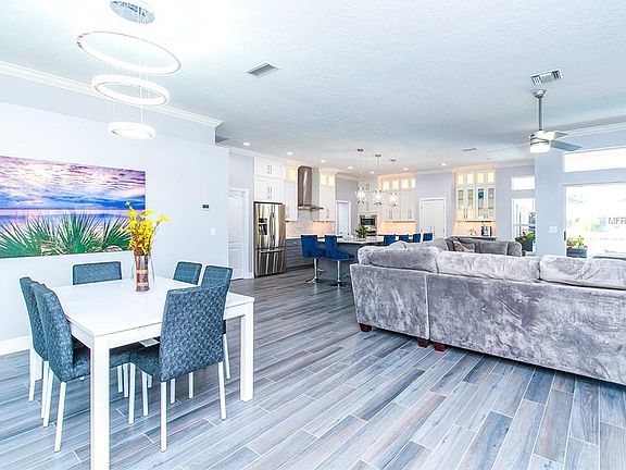 - Interior Features: Ceiling Fans(s), High Ceiling(s), Living Room/Dining Room Combo, Master Bedroom Downstairs, Split Bedroom, Central Vaccum, Crown Molding, Walk-In Closet(s), Open Floorplan, Solid Surface Counters, Solid Wood Cabinets, Eating Space In Kitchen, Kitchen/Family Room Combo, Thermostat