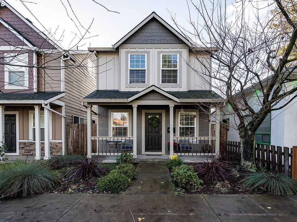 Charming home in North Portland. This home features 3 bedrooms and 2.5 bathrooms, open floor plan with engineered hardwoods floors on the main level. The kitchen boast stainless steel appliances, deep cherry cabinets and granite tile counters with bar seating and pendant lighting. Master suite features a large closet and a full bathroom. Enjoy the great pergola off the back driveway for all the Portland weather. [Home Energy Score = 8. HES Report at https://rpt.greenbuildingregistry.com/hes/OR10113779]