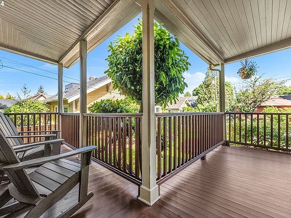Enchanting 1888 Victorian treasure in hip Hawthorne sits nestled back from street on an o'sized lot w/swoon-worthy covered, wrap-around porch celebrates an era long past while highlighting many modern updates & amenities, including 2 rare en-suites on main floor. This light-filled home has been updated w/Hardie Plank siding & JELD-WEN exterior wood sash energy efficient windows. 10 ft ceilings grace the main floor w/open floor plan, tall windows & original molding. French doors divide the living room w/bay window & dining room-both w/Maple flooring. Gorgeous remodeled gourmet kitchen w/Caesarstone counters & wood floors from reclaimed salvaged pallets; Bertazzoni Italia stove; kitchen island complete w/an eating area for Fido! Open shelved walk-in pantry w/pocket door. Kitch. cabinetry was custom built to replicate the original, but with the added convenience of multiple pull-out & soft-close drawers, dividers, recycle area. A Dutch door opens to spacious mudroom w/painted white wood siding. This area opens to the backyard & lower level. Primary suite includes an anteroom/dressing area offering flexibility: could make a nice nursery or another bedroom (the large, detached closet can stay or go); attractive vanity w/copper basin & heated floor. Both rooms w/wool carpeting. Updated bathroom w/claw foot tub, heated tiled floor. The en-suite (2nd bedroom) features wool carpeting and gorgeous bathroom addition w/custom cabinetry, hexagonal & subway tiling, skylight & hardwoods. Both BRs w/generous closets. Lower level w/lrg windows, 3rd BR (non-conforming), office; rec & shop areas. This flexible space w/outside entry has endless possibilities-perhaps an ADU? (Buyer to do due diligence). New cedar fencing surrounds this urban oasis w/spacious yard w/multiple plantings & raised beds. Same family-owned & 1st time on market in approx. 75 years! Walk Score: 91! Bike Score: 97! Enjoy Hawthorne & Belmont shops, restaurants, Mt. Tabor Park, Food Carts, library, cafes, more! [Home Energy Score = 4. HES Report at https://rpt.greenbuildingregistry.com/hes/OR10225755]