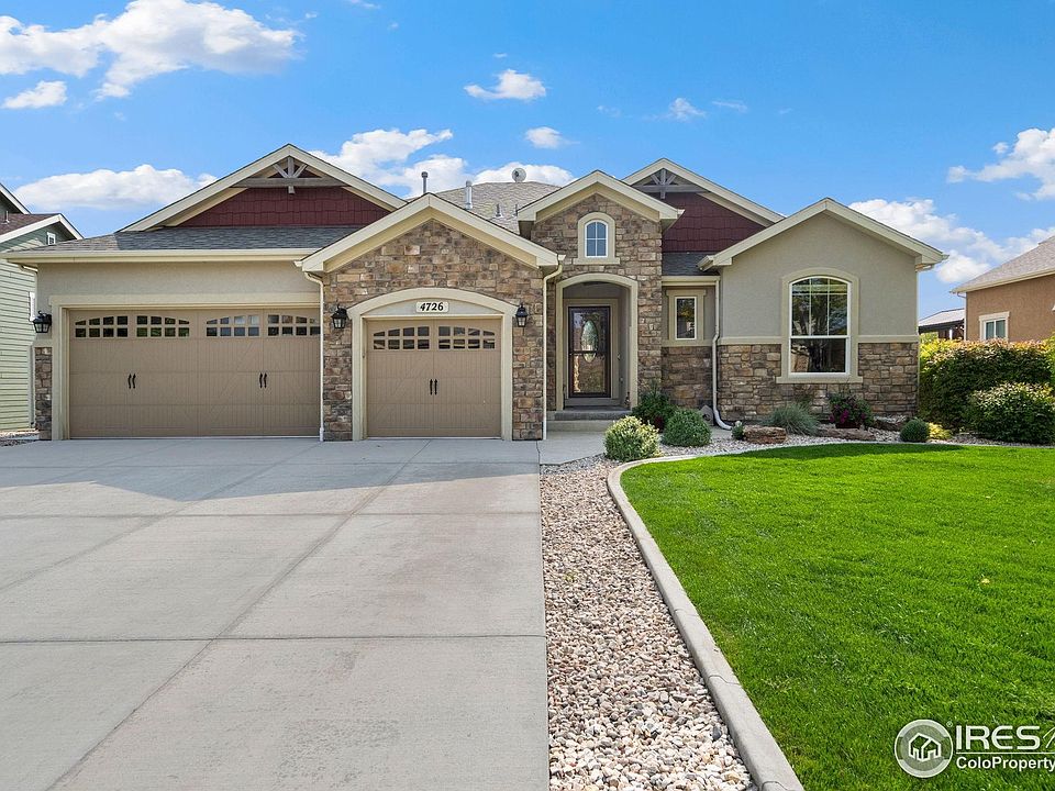 NO METRO TAX! Situated in the desirable Thompson Crossing neighborhood, 4726 Sorrel Lane is a beautifully maintained 6-bedroom, 4-bathroom home that offers a perfect blend of style, comfort, and functionality with a warm and inviting interior designed for modern living. The spacious main level features an open-concept layout, with a bright living room and beautiful stone fireplace. The large windows fill the space with natural light and flow seamlessly into the dining area and updated kitchen, which is equipped with sleek stainless steel appliances, generous cabinetry, and a central island ideal for both cooking and gathering. The primary suite is a private retreat with a dream updated en-suite bath that includes dual sinks, a freestanding tub, and a modern shower. The main floor is completed with 3 additional bedrooms that are comfortably sized and versatile, perfect for family, guests, or a home office. Bathrooms are thoughtfully designed with modern fixtures, and the convenient laundry room attached to the en-suit enhances day-to-day practicality. Outside, you will step into an oasis with a covered deck, electric blinds, outdoor TV hookups, and a stunning gas fireplace. Below is a large entertainment patio perfect for hot tub relaxation. The large basement is excellent for entertaining and features a full wet bar, 2 large bedrooms, an additional full bathroom and a ton of storage space. Garage is uniquely equipped with a separate complete HVAC system with furnace and A/C! Located within minutes of Centerra and its charming shops and dining options, residents can enjoy both recreation and community connection. Easy access to I-25 makes commuting to Denver or Fort Collins straightforward while still being able to savor the privacy and convenience of this great neighborhood.