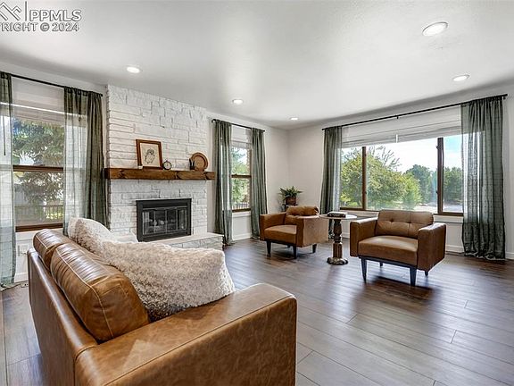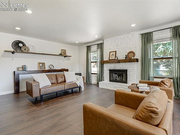 Welcome to this 2 story charmer nestled at the end of a quiet cul-de-sac. This well-maintained home, with only two owners since 1979, has undergone a full transformation, blending modern updates with timeless charm. The open-concept kitchen features quartz countertops, a center island with seating, and chic open shelving,. Enjoy both formal and casual living and dining areas on the main floor. The bright living room includes a gas fireplace with a stone hearth, while the cozy family room boasts a wood-burning fireplace with brick surround and easy access to a large deck and patio with a natural gas fire pit—perfect for outdoor living. The main level also includes a convenient laundry room with a walk-out to the backyard, a half-bath, and brand new wide plank LVP flooring throughout. Upstairs, you'll find four spacious bedrooms and two full baths. The master suite has a walk-in closet with custom shelving and a beautifully updated tile shower. The recently finished basement features brand new carpet in the oversized family/rec room which is plumbed for a wet bar, has a wood-burning stove, and a connected workshop with built-in shelving. The home offers excellent storage, including a large attic space above the garage. Other notable upgrades include a new furnace in 2011, a new water heater in 2018 with a smart circulation system for on-demand hot water, an upgraded RV parking spot with a 50 amp hookup, and a new roof installed in 2021. The home has been polished down to the details, with LED recessed lighting, new electrical switches, outlets, covers, and plumbing fixtures being replaced throughout. The upgraded sprinkler system ensures the almost ½ acre lot, with its green grass and mature trees, stays lush with ease. With close proximity to Palmer Park, shopping, dining, and Peterson Air Force Base, this is a truly move-in ready home you won’t want to miss! Make it yours today!