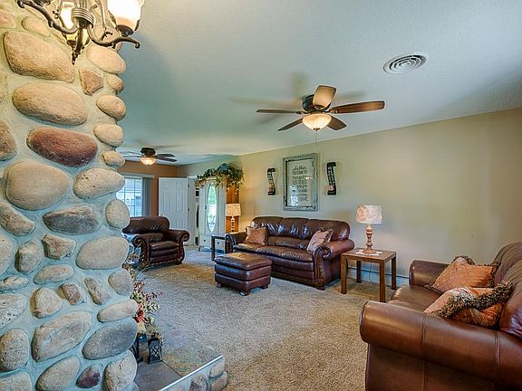 This beautiful home has it all! Approximately 1857 sq. ft. (Verified by 2017 appraisal) 4.9 acres! (approx. 2.5 wooded) Beautifully re-done including: 2 totally new baths, new flooring through-out, new A.C. and ductwork, new garage doors, well pump, ceiling fans, faucets, deer blind or playhouse in the woods (w/stairs), closet organizers & doors, tiled kitchen backsplash, and Softlite windows. Other improvements in the last 5 years include new heating boiler, hook-up to city sewer, 35'x40' of garden soil added to enclosed garden, fruit trees, hundreds of pines, hickory & river birch trees, horse shoe pit, 100 yard shooting range, gutter guards, mudroom lockers and electrical heating element added to A.C. air handler so home can be heated by either gas or electric. Also, new 40 gallon Rheem performance plus water heater professionally installed Nov 2017, new Culligan High efficiency water softener installed May 2018 by Culligan. The attached garage is 22'x22' (484 sq. ft.) The detached garage building is 28'x18' (504 sq. ft.)
