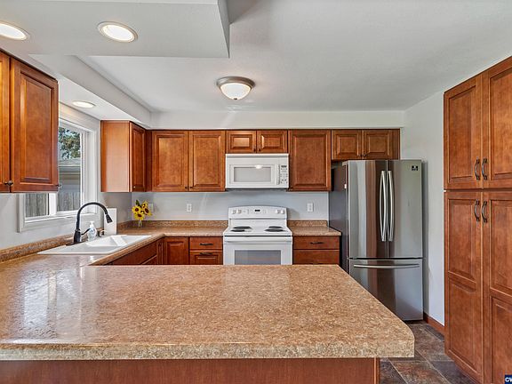 Ready for you to move in! This home offers 2 primary suites, 1 on the main level & one upstairs. 3 bedrooms on the main floor. Updated bathrooms, fresh paint inside, new LVP flooring in LRM, new carpet in BRMs. Kitchen is updated, has a breakfast bar, a pantry, cherry style cabinets with newer appls. Plenty of room for gardening, a play structure, & furry friends to roam. All that this home needs is your furniture.