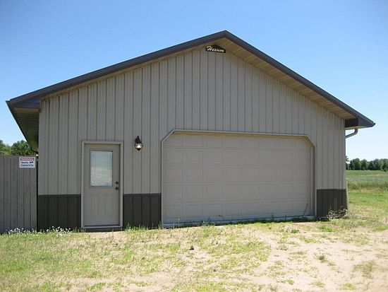 You must see this trendy ranch style home with versatile detached garage on 5.3 acres with access to Toad River.