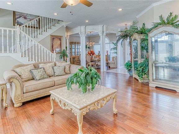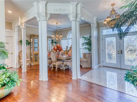 This Southern-style home is magnificent from the moment you step inside. From the ornate crown molding to the exquisite marble entry, it boasts elegance. Beautiful lg. windows w/transoms throughout. Huge gourmet kitchen w/all new appliances (never used), tons of beautiful cabinets, granite counters plus a gigantic island and an eat-in kitchen! Formal dining rm, 2 living rms, 2 WB fireplaces,, game rm w/wet bar, sitting rm, computer/library rm and an abundance of storage throughout. 3 decks accompany this