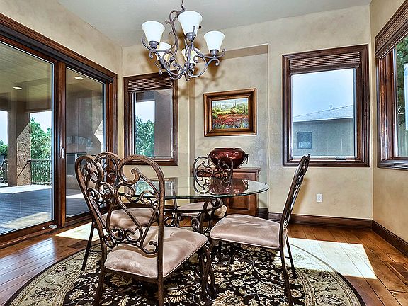 Imagine yourself enjoying the warmth & beauty of your own Tuscan Villa. Ideally located in a peaceful setting with majestic ponderosa pines, twinkling city lights and framed mountain views. Outdoor living areas include the gated courtyard, covered deck with fireplace and huge views, and covered patio from walk out lower level. Entering the front door you will immediately notice the quality, attention to detail and impeccable attention to detail in this well designed home with optimal main level living.Luxury from top to bottom with hand troweled walls, high end knotty alder finish throughout, wide plank wood floors, high ceilings upstairs and down, gourmet kitchen with double ovens, granite countertops, and wine cooler. Builder upgrades, Pella windows and doors, radiant floor heat in all bathrooms, plantation shutters and extensive landscaping are just a few of the upgrades you will find.