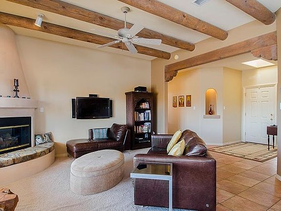 Looking for a quality built turn-key home on the Southside of Santa Fe with a tremendous view? Look no further; presenting a custom built 3 bedroom, 2 full bath single level 1716 sqft home - 20 minutes from the downtown Plaza, minutes away from shopping and restaurants and easy access to I-25 . This home was designed to maximize views that span from the Santa Fe ski mountain to the South West. Built in 2004 and immaculately maintained with vigas & beams, tile & carpeted flooring, 2 car garage and A/C. Welcome Home!