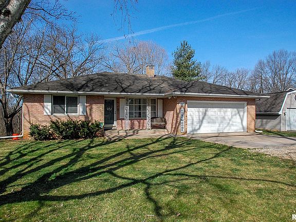 Discover serenity & comfort in this meticulously maintained brick ranch nestled on a picturesque 3/4 ac setting w/a tranquil wooded backdrop. Embracing a rural setting while conveniently close to recreation, shopping & interstate access, this home offers the perfect balance of privacy & accessibility. Step into a welcoming living space adorned with a painted brick fireplace hearth & crown molding, illuminated by abundant natural light pouring through expansive picture windows. An inviting open-concept is accentuated by hdwd floors in the bright, spacious & fully appliance kitchen & informal dining area with bay window highlighting a bird’s eye view of the large level yard & wooded setting. Both main floor bedrooms boast hardwood floors, double closets & share a tastefully updated full bath. The finished walkout lower level offers a comfortable family/rec area with woodburning stove, optional office/3rd bedroom (currently no entry/closet door & egress only from FR) & opens to a beautiful paver patio! Plenty of additional space in the bright & oversized laundry/full bath, as well as, a large storage/utility room. Completing this gem is a 2-car attachd garage w/pull-down attic access & a large shed with loft storage, may fit a 3rd vehicle & is equipped with electricity(shed roof - "As Is"). Embrace the tranquility of nature without sacrificing convenience in this great property. New in 2023: Dishwasher, hood fan, SS sink with pull down faucet, water softener.