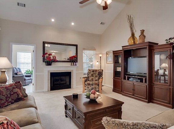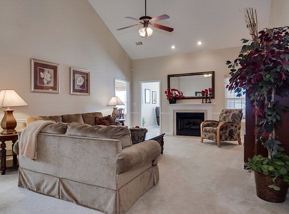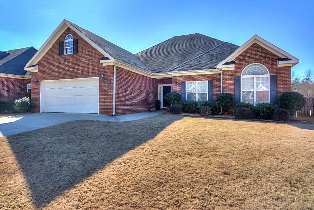Pristine, immaculately kept home! Seller is single occupant with no children or pets. Hardwood floor foyer welcomes you into large great room with cathedral ceiling and stately fireplace with marble accents. French doors open into cheerful sun room with tile floor and lots of windows for ample natural light. Dining room is spacious and features hardwood floors. Kitchen boasts 20 cabinets, stainless-steel appliances (all NEW Dec. 2016!), breakfast bar and breakfast room. Large laundry room has walk-in pantry. Hall bath convenient to bedrooms and main living areas. Owner bedroom boasts dual closets (1 walk-in), vaulted ceiling, and en suite bath with bath garden tub, shower and dual vanities. Neutral paint colors lend attractive character throughout. Ideal backyard features flat terrain, patio and privacy fence. AC and water heater replaced in 2016. Evans Schools are within walking distance! Quiet, sidewalk community; all brick exterior; and double attached garage complete the package!