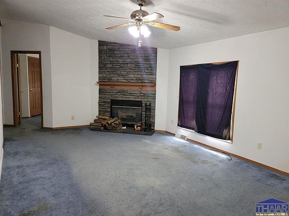 Country Living! 3 bed, 2 bath home situated on 1 acre just outside Cory. Step inside the large family room with vaulted ceilings and enjoy the open-concept feel of the dining room and kitchen. The dining room features patio doors that lead to the back yard. The kitchen features lots of countertop space and eat-in bar with a cut-out with views into the family room. The living room features a stone fireplace and is tucked toward the back of the home near the 2 bedrooms and bath. The master bedroom features a walk-in closet and en-suite bathroom with garden tub. Recent updates include bathroom fixtures, front deck, kitchen sink & faucet and back gutters, water heater and front door.
