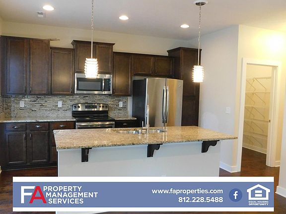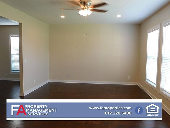 Spacious newer home with 4 bedrooms and 2.5 baths in Windham Hill subdivision. Engineered hardwood floors run throughout the main floor into a large eat-in kitchen with granite counters and stainless appliances and access to a covered aptio. Upstairs you'll find a bonus living area and split bedroom design. The master en-suite offers double sinks and walk in closet. Laundry is on the second floor along with a second full bath. Outside is a full fenced in yard. Average VECTREN: $231. Schools: Oak Hill, North. The tenant is responsible for all utilities. 12 month lease with matching deposit. Credit, background and rental check required. Available immediately. Call 812-228-5488 to schedule an appointment to view 4727 Windham Drive Visit our website at faproperties.com The tenant is responsible for all utilities. 12 month lease with matching deposit. Credit, background and rental check required.