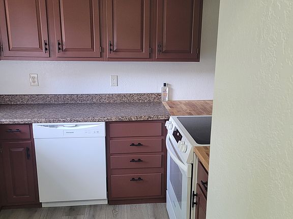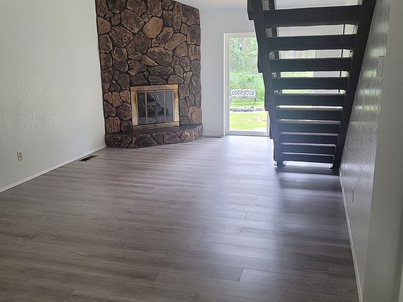 Remodeled unit. New flooring, fresh paint, and new range and dishwasher. Large loft/bedroom upstairs with adjoining bathroom, but no door to room. Sauna room upstairs. Secondary bedroom and bathroom is downstairs. Attached heated one car garage. Parking on the side of unit for a vehicle or winter toys. Washer and dryer in unit. Tenant is responsible for gas and electric. There is no trash service-all trash must go to the dump or transfer station. Unit sits on a well and septic system.
