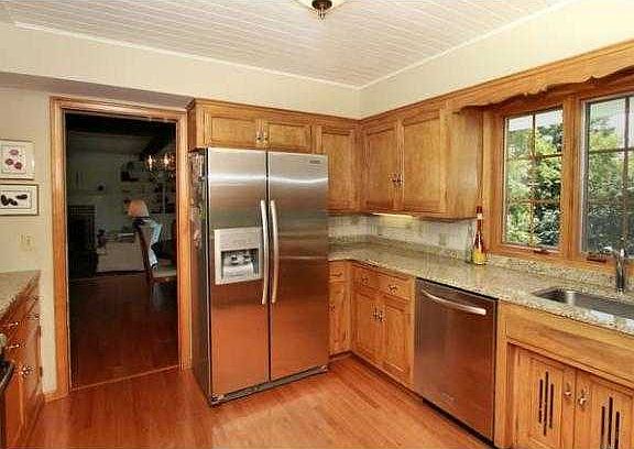 Charming Cape Cod on private wooded site with many updates & meticulously maintained! New roof, newer windows/storms/doors, hardwood floors, granite & stainless kitchen, paver walk, new gar floor/door. 3-season porch/deck, separate fenced yard/pool.