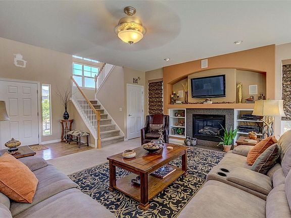 This Immaculate Jewel is Gorgeous! Fantastic home in amazing condition and ready for quick occupancy. 9' ceilings, upgrades and custom details throughout. The main floor features an open gourmet kitchen with "Merillat" cabinets solid surface countertops, double ovens, and new washer, dryer and refrigerator included. Formal dining room and a spacious family room with fireplace and custom window coverings. The second floor has 4 spacious bedrooms including a large master suite with custom bookcases and retreat. 5 piece master bath with heater/fan. The professionally finished basement has 2 bedrooms, full bath with steam shower and den. Professionally landscaped front and back on 1/3 acre lot with concrete slab RV parking raised planting beds, Trex Deck with outdoor kitchen and "Sunsetter" canopy and horseshoe pit. Across from newly constructed park, close to shopping, hospital major highway, and DIA. THIS IS A MUST SEE!!
