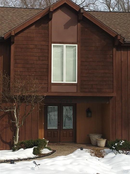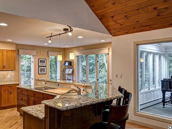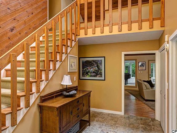 A wooded oasis, this 5 BR 3.5 BA home on 1.15 acres offers beautiful views & privacy. You dont need to cover these windows! Lots of natural light to brighten. Great for entertaining. Front yard offers play area, plus side fenced area for pets. Loft overlooks 2 story family room w/stone fireplace & wood ceilings open to gourmet kitchen w/granite ctops & brkfst bar. Finished LL, 3 car garage & more. A joy to show!