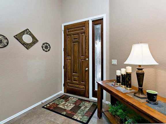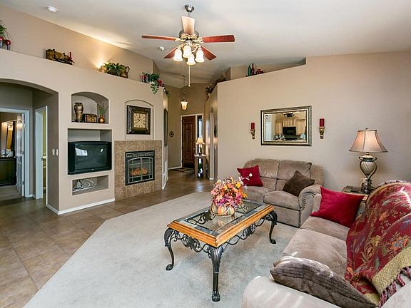 You'll love living in this beautiful model-like home with extensive upgrades. Thoughtful features include granite counters with tile backsplash, multilevel hickory cabinets, easy care tile flooring, designer 2-tone paint, sunscreens for all windows, wood blinds, cozy gas fireplace, built-in entertainment center, and laundry room with front loading washer & dryer and upper cabinets. Garage has cabinets on both sides. You'll also enjoy a beautiful fully landscaped fenced back yard with flagstone patio and screened covered patio. This home has been well maintained by current owner, entire outside of home professionally painted this summer. Enjoy the looks of a model home with many upgrades without the cost of having one built.
