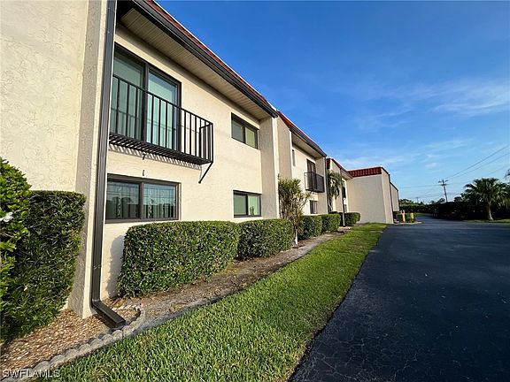 Priced to sell with beautiful golf course views! This Spacious 2 bed, 2 bath condo is move-in ready With fresh paint, flooring, lighting, dishwasher and impact windows that are here and soon to be installed. Come escape to the warm air and sunshine. Our quiet 55+ community is situated just minutes from the Downtown Fort Myers River District, Cape Coral, shopping, restaurants medical and more. The legendary beaches of Fort Myers and Sanibel Island are just a short drive from this great North Fort Myers location. Community pool, in-unit washer and Dryer, master walk-in closet, 1 covered parking space, outdoor storage closet, restaurants and shopping in walking distance are just a few of the reasons you don't want to miss out on this one. This winter, you could be enjoying your morning coffee on the screened lanai, overlooking El Rio Golf Course. Or, you could be shoveling snow! What are YOU waiting for?
