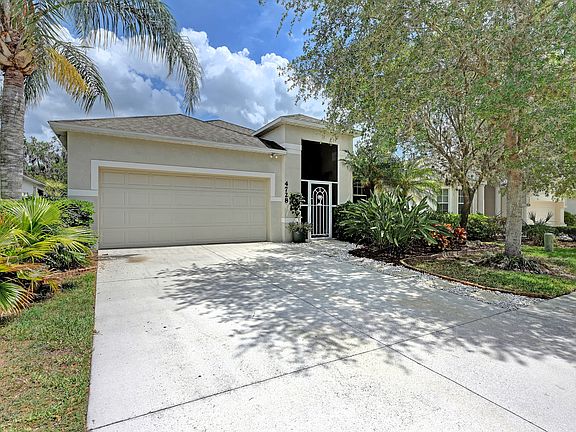 Are you looking for that perfect, move-in ready home with peaceful wood and water views, outdoor entertainment space, and an Open Floor Plan? You've found it! This One-Owner home has been meticulously cared for and has many recent upgrades, including a 6 person Jacuzzi with a bar. A split bedroom plan affords additional privacy for the master suite. Great Room has a formal dining room area. Kitchen features corian counters, breakfast bar, and new stainless dishwasher, range, and microwave. French Door Refrigerator with Bottom Freezer is just a few years old. Off of the living room is an office/den that also opens to the caged patio area. Master Suite has a large walk-in closet complete with organizers. Master bath features dual vanities, walk in shower and separate tub. An inside utility room offers extra convenience. Extra Wide Glass Patio Doors exit to a covered outdoor sitting area and a 560 sq ft caged patio with a new 6 person jacuzzi. The cage features several panels of "Florida Glass" that offer extra protection from sun and rain. Mature Oaks provide extra shade as well. Enjoy Happy Hour overlooking the water and watch Florida's birding life at your doorstep. A/C is 2016. Covered Bridge Estates features a Community Pool and Recreation Center plus Tennis Courts. Convenient to I-75 commute, Ellenton Outlet Malls, Shops and Restaurants.