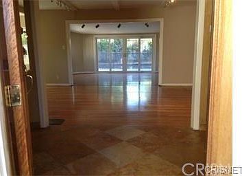 Gated and Remodeled Large Pool Home with 3 bedroom and 2 bath in the best part of Sherman Oaks. Double Custom Door Leads you to all Granite Travertine Entrance with all Chery Wood Floorings to a Large New French door which leads you to Amazing Private Pool back yard with custom launching Area. Recess Lighting and designer Travertine Bath with Jacuzzi are part of this beautiful home. all Hard wood floorings and all mirrored closets in all rooms. Large kitchen with very bright and lighted Dinning room. private 3 care attached garage with washer and dryer connection inside. Very Private and secure for the most discriminating tenant. House seats behind closed gate for extra privacy and security