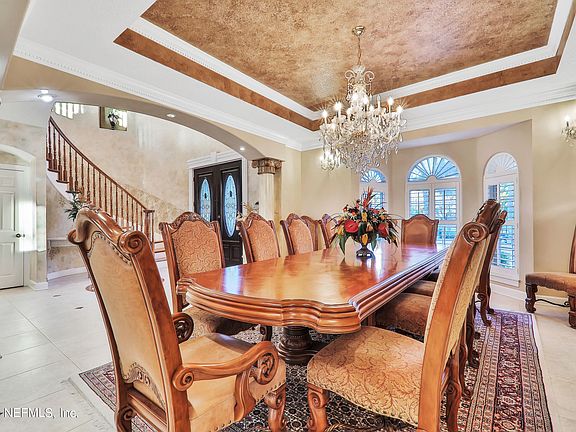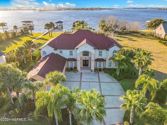 As you drive down the palm-tree lined entrance to Rive St. Johns you will know you have found a hidden gem in this picturesque riverfront community. Elegant & inviting this custom-built insulated concrete form (ICF) constructed riverfront home is built to perfection. Boasting over 5,800 sq ft this 5-bedroom, 6 bathroom home is the epitome of Florida outdoor living overlooking the wide views of the St Johns River. From the moment you enter the home you are greeted by the two-story foyer w/sweeping staircase, meticulously hand-painted by local artists, opening to the exquisite living room, w/cast-stone fireplace, & dining room, w/authentic Swarovski Spectra Crystal chandelier, all w/ spectacular water views. Gourmet kitchen, adjacent to the family room, boasts 5-burner gas cooktop, stainless steel appliances, Blue Volga granite counters, Tyent water ionization system, walk-in pantry, & is perfect for family gatherings or entertaining w/easy access to the pool & outdoor living area. This home boasts 2 master suites, w/river views, walk-in closets & spa baths. The upstairs master suite w/cast-stone fireplace, & river views from the balcony, will be the favorite or maybe you would rather be downstairs w/your quaint private terrace & river views, perfect for enjoying your morning coffee in privacy. The downstairs suite is perfect as a guest-suite or in-law suite. Two separate offices, one upstairs, located off the master bedroom boasts a closet making it perfect as a study or nursery, & one downstairs, all you need for those working from home. Upstairs boasts Brazilian Cherry hardwood floors, 3 ensuite bedrooms & expansive family room w/cast-stone fireplace & wet bar, the perfect game room. Step outside to the 2nd-story expansive balcony w/cedar tongue & groove ceiling & enjoy the stunning views. Enjoy dining al fresco & entertaining friends & family no matter how big or small the gathering...for small intimate gatherings enjoy the resort style massive covered outdoor lanai w/cedar tongue & groove ceiling, salt-water Pebble Tec-finished pool, & summer kitchen...or take the gathering to the gazebo bar/grill area where you will enjoy lounging under the stars as others engage in a friendly game of half-court basketball. Enjoy life on the St. Johns River w/spectacular panoramic water views from your huge backyard w/fruit-bearing trees & lush palm trees, or stroll down to the expansive 240' dock w/14'X 32' boathouse & 13,000 lb Dolphin boatlift. Enjoy hours of boating, fishing & water sports w/easy access to the ICW & Atlantic Ocean just 14 nautical miles away. Just a 13-minute drive to downtown you will enjoy fine & casual dining, museums, Performing Arts Center entertainment, TIAA Bank Field events, & the list goes on... You will never tire of the endless ever-changing sunsets from this spectacular home. 2021-05-10