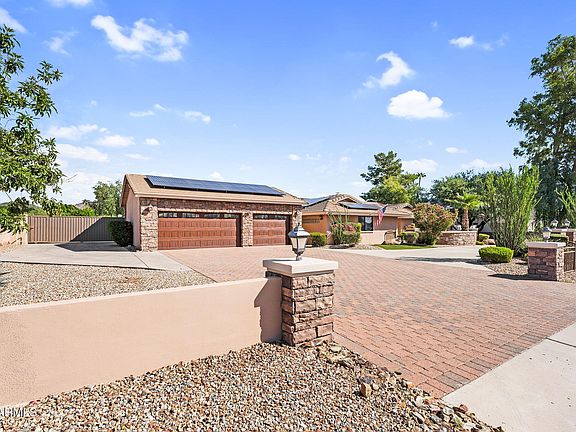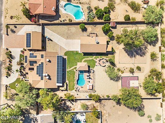 Experience resort-style living on 1.2 acres between Pinnacle Peak & Happy Valley Rd! This private estate features a 4 bed, 2.5 bath main home plus a 2 bed, 2 bath guest house—perfect for multi-generational living or income potential. An oversized 3-car garage, expansive concrete parking for RVs, boats & 20+ vehicles, and an electric gate set the tone for both security & convenience. Outdoor amenities abound: sparkling pool, sand volleyball court, basketball/sport court and huge covered patio w/misters ideal for entertaining. Inside, enjoy elegant living spaces, a welcoming courtyard, H2O softener and solar for energy savings. Whether you're hosting family, enjoying Arizona sunsets, or taking advantage of nearby shopping, dining, and top schools, this property blends luxury with lifestyle. Discover your own private desert oasis! Tucked back in a private neighborhood off Happy Valley Rd and 51st Ave on a sprawling 1.2-acre lot, this Glendale estate is designed for those who want it allluxury, privacy, & endless opportunities for entertaining.
