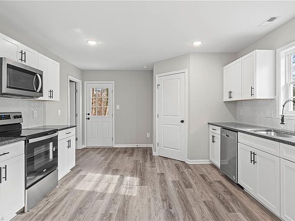 New construction! Welcome home to one level living with open floorplan, Living Room with Vaulted Ceilings, Open Dining area, and Spacious Kitchen.. Kitchen offers stainless appliances, tile backsplash, Quartz Countertops, Pantry, Laundry Room ... Primary Bedroom offers walk in closet and attached bathroom with Tub/Shower Combo and single sink... Ceiling fans throughout ... Back patio and attached storage area ... Large Driveway Parking Area... Preferred Lender Ally Cain with Atlantic Bay Mortgage offering lender credit of 1% of loan amount up to $2500 - Direct: 336-794-6400 x 5435, Mobile: 336-479-2324, allycain@atlanticbay.com (See agent only for offer instruction)