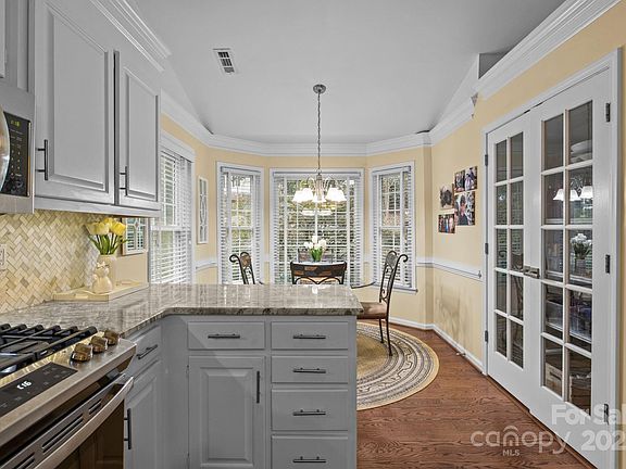 Rare one story nestled in a wooded oasis in Charlotte’s desirable Davis Lake community! This 3-bedroom, 2-bath home features an open floor plan with vaulted ceilings, a cozy gas fireplace in the family room, hardwood floors, and a modern kitchen with granite countertops and a large pantry. Enjoy a bright year round sunroom overlooking a private, landscaped backyard and spacious deck perfect for entertaining. Multi-purpose Sunroom can be used as home office, den, playroom or fitness room. A beautiful forest of tall trees provide a serene sanctuary on your private deck. The primary suite offers a walk-in closet and spa-style bath with soaking tub and dual sinks. Move-in ready with fresh updates throughout. Most recent updates include AC, Heater, All ductwork, Water Heater, Skylights, & Kitchen Appliances. Davis Lake amenities include a pool, tennis courts, clubhouse, playground, and scenic walking trails. You can access a walking trail right from your backyard. Conveniently located near Uptown Charlotte, Huntersville, University and major highways, this single-level home combines comfort, style, and an unbeatable location.