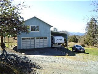 A slice of the Oregon dream right here on an acre and a half of tall evergreens and wide open spaces. The home, at 1694 s/f in a split level design, is 3BR/2BA, features an efficient wood stove backed up by a heat pump, beautiful hardwood flooring and lots of color to brighten things even more. Several outbuildings dot the property, but along with the attached double garage, there's also a two story garage/shop/guest quarters with covered RV parking alongside. It's real countrywith cross fencing surrounding a huge area perfect for critters, a large garden area, lovely views of trees and hills and all the privacy in the world in your backyardjust a few minutes from Grants Pass.