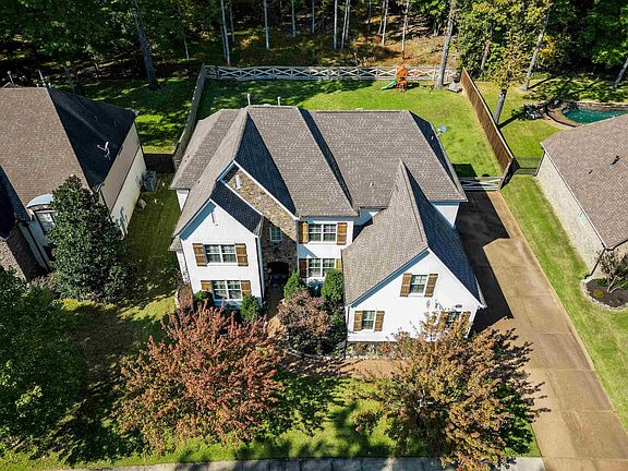 Absolutely meticulously maintained home located in the highly sought-after Grove at Lakeland. This custom-built beauty features an ideal floorplan that backs up to a serene greenbelt, ensuring privacy w/ no future development. The luxurious primary bedroom offers a large walk-through shower, while the second bedroom includes its own private bath. The gourmet kitchen is a chef's dream, complete w/ granite countertops, stainless steel appliances, a gas cooktop, double ovens, a large pantry, & custom cabinetry. The home also includes a butler’s pantry/bar, office, & a friend's entry. Additional highlights include 8-foot doors, 3-car garage, laundry room w/ sinks, & bonus room upstairs w/ 3 large bedrooms. Step outside to enjoy the covered patio w/ Phantom screens, fire pit, & picturesque views of the green space. Modern features such as a Flo by Moen water monitor/shutoff system. Neighborhood stocked fishing pond & walking trails. No expense spared in making this home a true masterpiece!