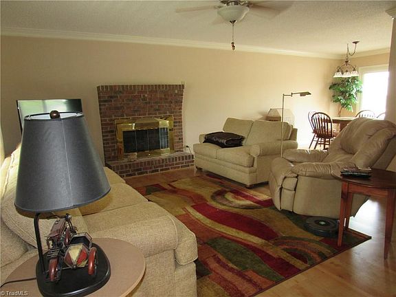 Open House CANCELED. MULTIPLE OFFER SITUATION. MECHANICS DREAM! CALLING ALL THAT DESIRE A SOLID BRICK HOME, quiet neighborhood, and plenty of SPACE FOR THEIR VEHICLES. Immaculately maintained 3 bed, 3 full baths. Like new stainless appliances. Huge downstairs bonus /4th bedroom/or convert into separate living quarters. Large Trex deck overlooks private back yard with views of goursous pasture lands. More than just a 729 square ft two car basement garage. Heavy duty rubber flooring throughout as with tons of extra storage space. Fully permitted 30 x 40 garage/workshop with Eagle 2-post mecanic lift to remain! Plenty of parking on expanded driveway as well. Lovely manicured yard and landscaping. Walk the Creekside Greenway to the library and parks with many recreational activities. This home has a country feel yet is conveniently located near shopping, restaurants, and schools. Minutes to highways, High Point, and Greensboro. NO HOA. Come and visit this wonderful home today!