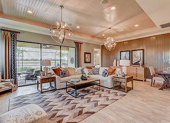 COMMUNITY MODEL FOR SALE ** $100,000+ in luxury touches and accents ** Absolutely stunning example of an east county custom home, dressed in top of the line everything, sitting on lakefront lot with breathtaking views. This Key Largo floor plan offers 2,390 square foot with 3 bedrooms, 3.5 baths and a 2-car garage. The screened lanai is pavered with heated pool and spa and views to the northeast. The interior offers beautiful tiles throughout the living areas, wall niches, detailed trims, gorgeous chic lighting, custom cabinetry in the kitchen and laundry, stainless appliances with a luxury glass cooktop, soaring tray ceiling, 8 foot doors, decorative lighting.. The list goes on and on and on.. Unparalleled quality and professional design.. Ask about the fully furnished package!