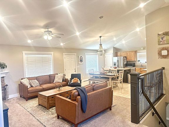 Perfect 6 bedroom 3 bath home for a family with kids, to grow your family, or for grandparents! This house feels light and open with vaulted ceilings and newer carpet and paint throughout the entire house! It has a big two car garage filled with storage shelves. There is also an extra long parking pad and oversized driveway for more parking area. Main area is a beautiful open floor plan with big windows and a gas fireplace. The basement family room is huge and provides enough space for TV watching and a ping pong table, pool table, etc. Bedrooms are large and there is plenty of storage space in them and throughout the house! The master bath has an oversized jet tub and walk in closet. There is an unfinished area in the basement that can be used as extra storage, a weight room or whatever you desire. Instead of backyard neighbors this house has a subdivision park directly behind it with a sports court, playground, walking/biking paths and bowery for your use! The backyard has garden boxes and a big covered patio with hookups for a grill. You can’t beat this location it’s near everything!!! Located just east of the high school and next to the pickleball courts, indoor soccer complex, splash pad, ice skating rink, walking paths, library, future rec center and baseball field you will have a lot to do and enjoy!