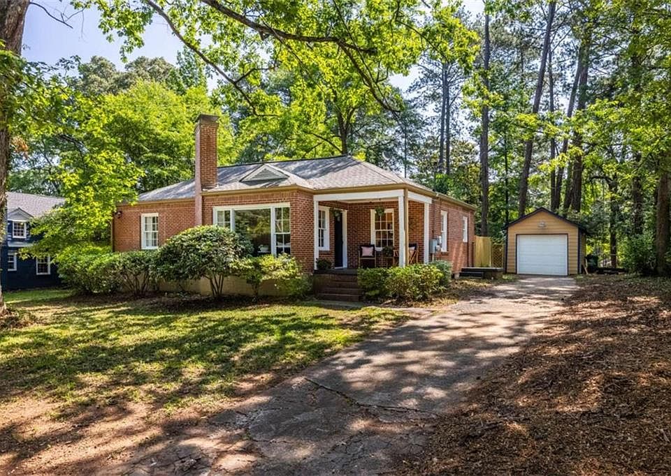 Charming brick Decatur cottage in coveted Springdale Heights neighborhood! This cute-as-a button home sits perched on a hill on a quiet loop zoned Fernbank Elementary. Character abounds in this sweet space-- you'll love the hardwood oak flooring, large picture window, original fireplace, and enameled drainboard sink. This house has great flow! A welcoming front porch opens into a light-filled living room. Off the living area, an updated eat-in kitchen flows to the spacious, fenced-in backyard. There's plenty of room for grilling out, roasting s'mores around the firepit, and fulfilling your urban homesteader dreams (or just cozying up in a hammock with a good book!). A detached garage is the perfect workshop, or get creative and realize your dream tiny house. Savvy buyers, this home is perfectly placed on a huge lot in a quiet neighborhood within a fabulous school cluster. Only a few blocks from MARTA, downtown Decatur, Glenn Creek Nature Preserve, and the convenient shopping district off N. Decatur, which includes Wholefoods and Sprouts. Homeowners have been wonderful stewards of this home-- the HVAC was replaced in 2022, electrical updates have been completed, and they've worked with an arborist to remove 6 trees and ensure the health of their beautiful tree canopy.
