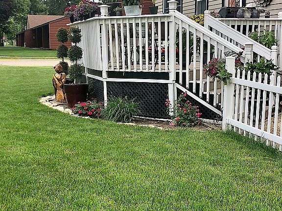 Charming 2 story home with 75% finished basement on a corner lot, close to both Elementary and High schools. Large porch on front with balcony above. Deck off east side and brick patio in backyard between house and oversized two car detached garage. White maintenance-free picket fence around backyard with invisible fence around lot perimeter to contain your pet.