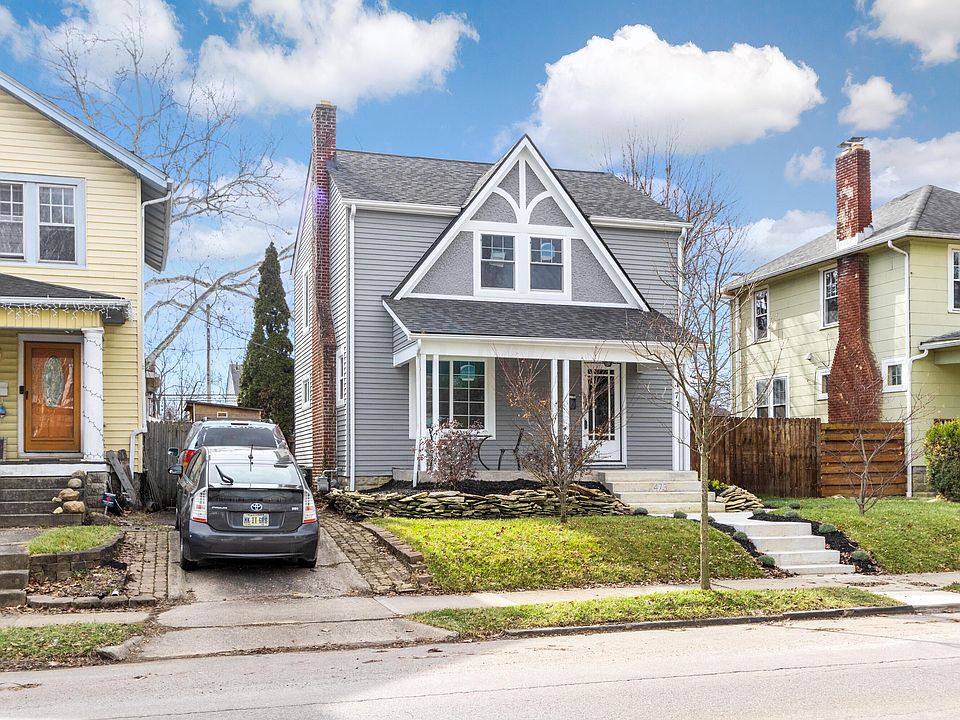 Classic Clintonville home lovingly remodeled by owner of 12 years. Completely new kitchen and bathroom with refinished hardwood floors, fully fenced yard, large 2 car garage and off street parking in alley, new landscaping, sidewalk, and rear patio! New roof and gutters 2020, New furnace 2018, new AC 2023. Quartz countertops, all new windows, fresh paint, this home has been brought back to life for you to enjoy! The kitchen and dining room have been opened up for a contemporary feel while maintaining the historic charm of this 91 year old house. Please see agent remarks regarding Columbia Gas plans across the street.