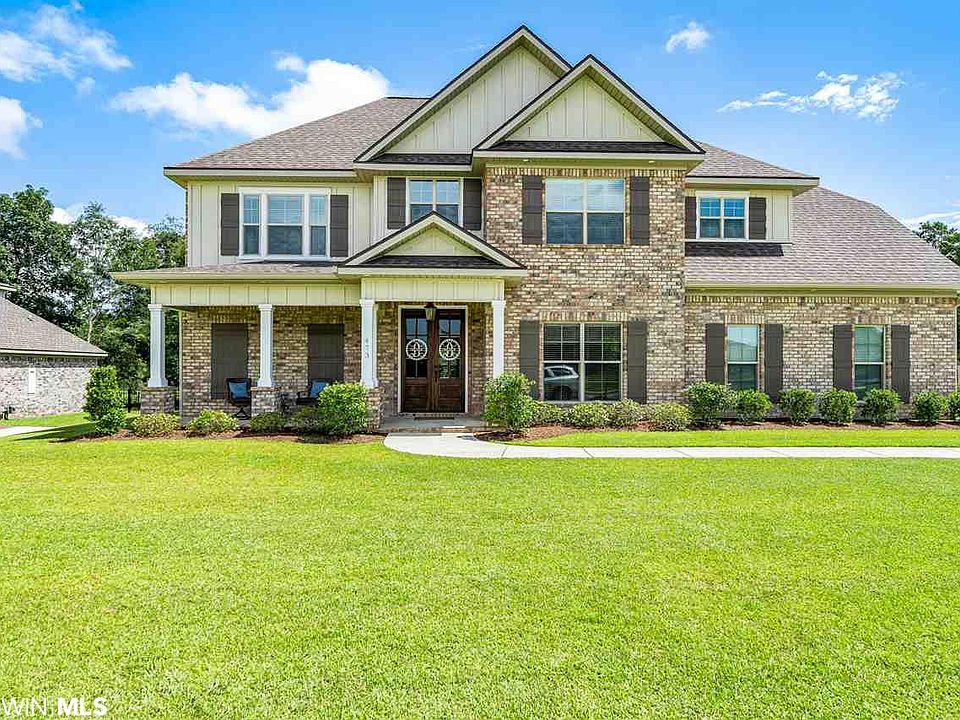 Over 3,600 square feet of LUXURY living at FIRETHORNE in FAIRHOPE! This GOLD FORTIFIED like new (2017 construction) home has 5 bedrooms/3.5 baths and tons of storage. The front double doors of this showstopper home open to a grand two story entryway. The separate dining room, half bath, and extra closets are off to the side of the foyer, while straight ahead leads into the living area. The large great room features a brick fireplace(gas) with a rustic wood mantle and opens to the breakfast area and kitchen. The kitchen is complete with white painted cabinets, granite counters, center island, stainless steel gas 5 burner stove, and built in oven and microwave. Off the kitchen is a handy built in desk area and large walk in pantry. Off the garage entry are a conveniently located drop zone/mud area and laundry room. This home has amazing storage with 4 hall closets throughout and huge walk-ins in EVERY bedroom. The stunning master suite is conveniently located on the first floor and features a spacious bedroom, HUGE tiled walk in shower, over-sized soaking tub, double sinks, separate toilet area, and extra large walk in closet. Upstairs, bedrooms 2 and 3 share a spacious hall bathroom. Bedroom 4 is extra LARGE with its own on-suite bath. Bedroom 5 is a huge 18x23 size(has a walk in closet also) and is currently being used as an entertainment room. There are 2 walk in attic access spots upstairs for storage. Tankless gas hot water heater! Outside, the covered back porch opens to an extra wide fenced in yard. The sellers added an additional concrete parking pad so there's plenty of space for vehicles! Sellers also added a second water meter for the irrigation system. Firethorne neighborhood amenities are top notch- especially the pool! The playground, tennis court, gazebo, BBQ area, and various common areas are just lovely. Don't miss this spacious and gorgeous home!