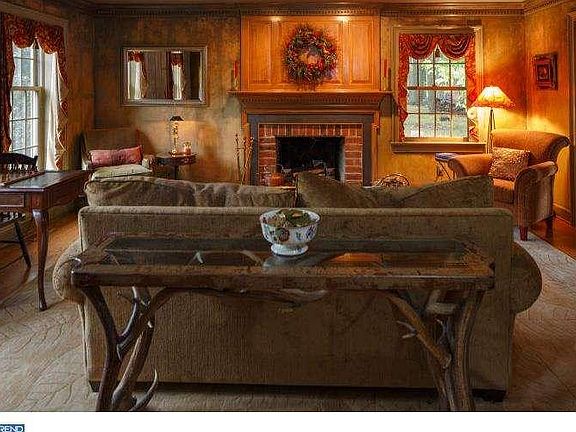 Beyond the red gate lies an oasis like no other. This 10 acre estate is nestled alongside 300 acres of conserved and deed preserved farms, fields, and forest. Set 800 feet from the road, awaits a stone and cedar reproduction farmhouse with add-ons. Enter a spacious foyer centered between the formal living room with fireplace and a formal dining room. The faux finished walls and wainscoting are reminiscent of the craftsmanship found in the late 1800's. Beyond the living room is a quiet study or music room, which is adjoined by a gallery that houses a wall of custom built?in hickory bookcases with cabinets faced with hand punched copper inserts. Step down from the gallery into the family room that boasts a replica colonial cooking fireplace and three large sliding glass doors that bring the outside in. Step outside onto the wrap around deck overlooking pastures and woods. The expansive country kitchen with its cherry cabinets, Mexican tiled island, and large eating area also has a sliding glass door that leads to a vaulted ceiling three-season sunroom. The flow through this home makes entertaining a large gathering easy to do and the abundant natural light illuminates every room. Adjoining the kitchen is a mudroom with soap stone wood stove and reflective stonewalls and also contains a powder room and laundry room with ceramic tile floors. The turned staircase in the mudroom takes you to a craft room through which you enter a well lit expansion space over the oversized two-car garage. The turned staircase in the foyer takes you to the second floor with four bedrooms that includes a cathedral ceiling master suite with sitting room. Another turned staircase leads to the third floor, which is an additional 1,000 square foot space with multiple windows, incredible views, fully insulated, and wired waiting to be finished. Next to the woods and beyond the lower pastures is a pole barn with attached fenced-in raised bed garden for your potting bench, canoes, and mower. The main four-stall barn is paired with a lit riding ring and convenient paddocks and pastures. The barn has tongue in groove paneling and is fully insulated with radiant heated tack room and hot/cold water wash stall. The hayloft above holds 6 tons of hay and has a solar powered exhaust fan and ridge vent. All this and just minutes from the amazing Bucks County Horse Park! Come feel the serene reserve that is Red Gate farm.