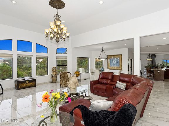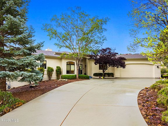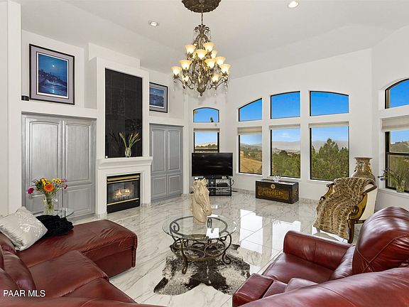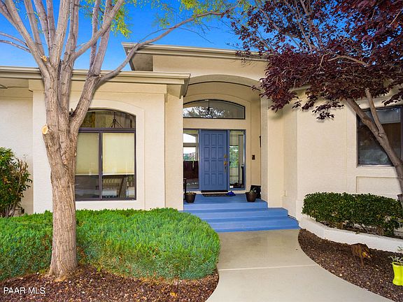 Gorgeous, unobstructable views from this stunning contemporary home, resting on almost an acre of landscaped grounds. Gracious main-level living enjoys panoramic views from every room. The spacious lower level with three additional bedrooms and a huge family room is tailor-made for entertaining. The partially finished and plumbed 691 sq ft flex room is perfect as is for a workshop, or it can be easily finished for an additional ensuite bedroom and bath. Two furnaces, two water heaters. A newer roof, fresh exterior paint and a newly resurfaced driveway. A beautiful, distinctive home in a prestigious neighborhood, minutes from all the amenities Prescott has to offer.