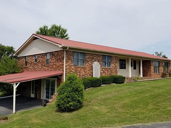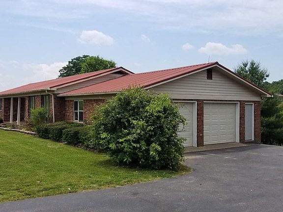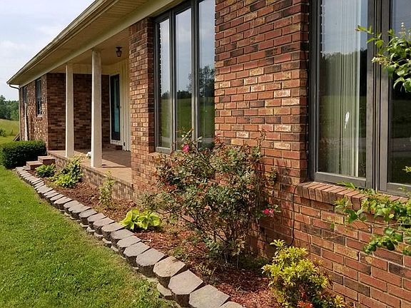 This 3BR, 3 BA brick ranch home with 1500SF basement sits on 1.7+/- acres. This home has a living room and a family room, eat-in kitchen and dining area with a brick fireplace. The walk-in utility room is on the main level. There's a 12 x 24 enclosed porch area on the back deck and an attached 2 car garage. Home has a metal roof and thermo pane windows. Natural gas w/Blue Grass Gas. The basement is used as a 4th BR, den, kitchenette, and full bathroom but can not be counted as finished as the ceiling height is less than 7ft and walls are painted concrete block but it is a dry basement.