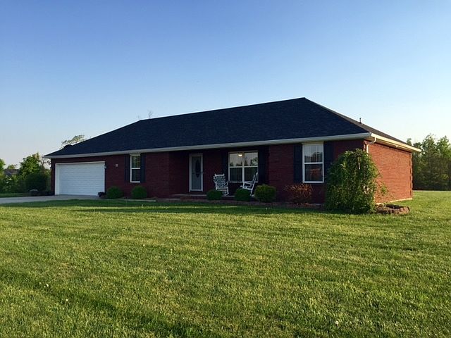 3 Bedroom, 2 full bath all brick ranch built in 2011 sitting on 2.45 acre lot. Home features all hardwood and ceramic throughout, open floor plan, vaulted ceilings, walk in closet, newly poured stained concrete patio w/ gazebo, 18x14 shed, covered front porch, 2 car attached garage, and beautiful landscaping!
