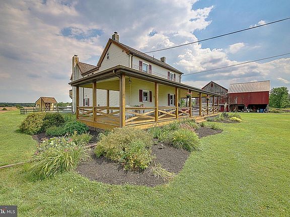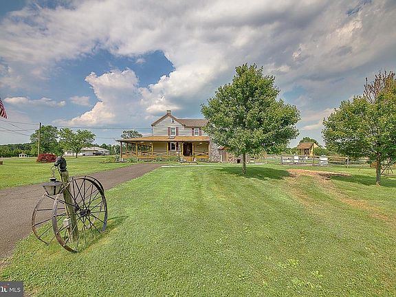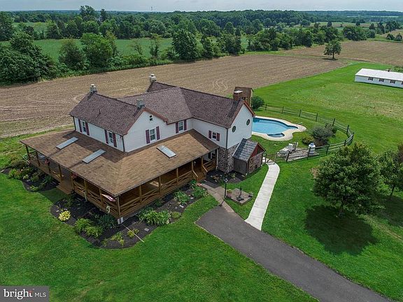 Welcome to Holland Hill Farm. If you believe in heaven on earth, here it is! 19.88 acres of bucolic Bucks County. When you first view this farmhouse, you will be impressed just how large the wrap around porch is. It is spacious enough to be a dance hall and host any gathering you can imagine. The farmhouse has had an addition to ~the little house~ (that was the original house) circa 1950. The present home has 2946 square feet of loving care with five bedrooms and three full baths. As you enter the foyer, to your left is a large kitchen with plenty of cherry cabinets, built in dishwasher, electric range, stainless steel appliances and a great amount of space for the chef to bake and cook those special holiday meals. Off the kitchen is a formal dining room with a lovely chandelier, wooden beamed ceiling, wood floors and knotty pine paneling. One of the two pie shape stairways is in the kitchen that takes you to the second floor. The door to the basement pie shape steps are also in this room and will lead you to the three-zone oil heater and water heater. Just off the Family room is what used to be the original ~little house~ with a beehive oven and large smoker fireplace. This room is perfect as an in-law suite bedroom with a short walk to a beautiful, new, handicapped ceramic bath that is accessible with a roll-in shower. The Franklin stove in the family room will warm you on those cool nights and the custom corner seating is just the place to enjoy the warmth of the stove. The sliding glass doors lead out to the covered patio and onto the pool and spa. In ~The little house~ you will find the second pie shape stairway to the second floor bedrooms. Upstairs are five bedrooms and two full ceramic baths, a cedar closet, a laundry shoot and loft area. The master bedroom has its own ceramic bath and sliding doors that take you out to a large porch that has a view of the in-ground heated swimming pool and jetted spa and the farm fields that are on this beautiful prop