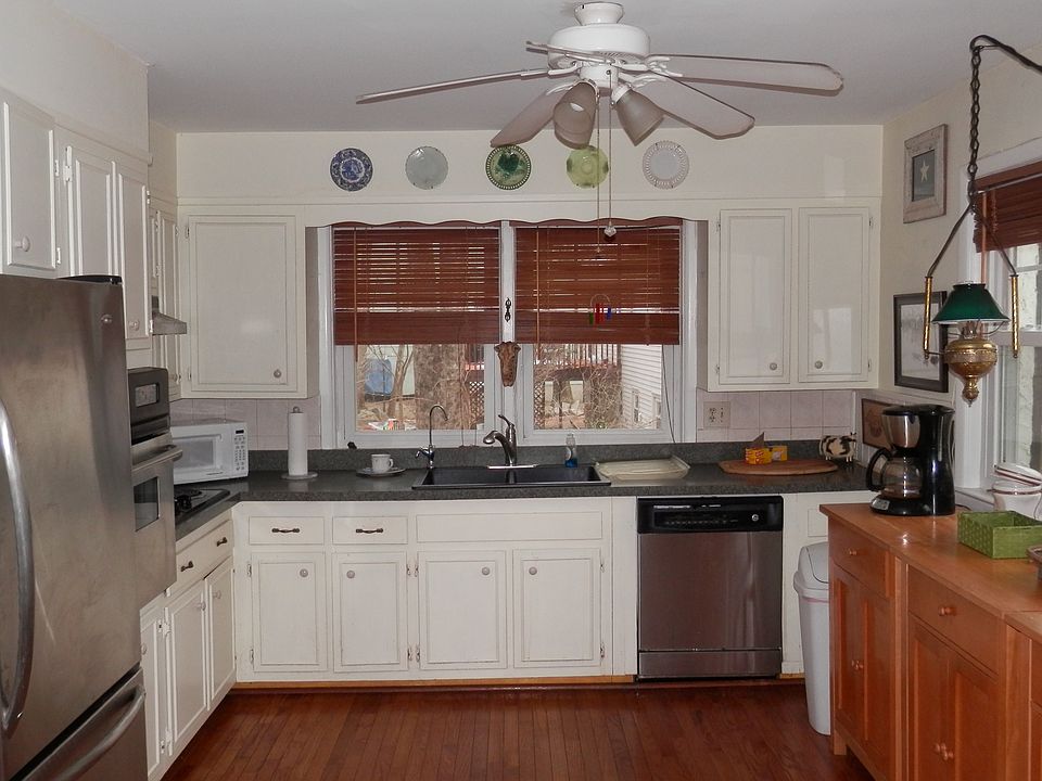Theater producer's own creation reminiscent of an adult fairy garden. Stone paths, rows of ferns, mossy clumps, stone bench circles, concrete statuary create a most unusual landscape. Literally a 1 minute walk to Roaring Brook Lake Park Beach with lifeguard and boat launch areas. This home is a perfect full time starter or weekender. A cozy fireplace, new appliances and new bathroom are among the updates of this charming, unique country home. Sunroom entered from the master bedroom provides a serene, relaxing four season retreat. Basement has served as a three room entertaining space for extended family. Lake house with a different type of property décor. Views and access to Park Beach.