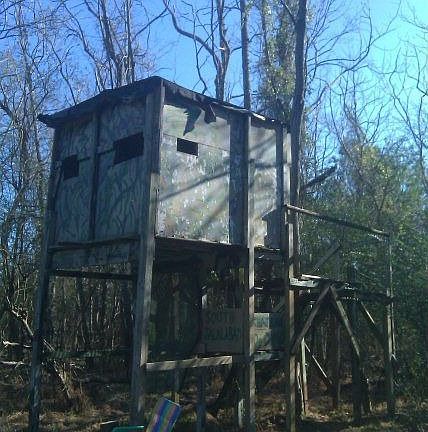 Nice small hunting getaway! 19 ft Coyote Travel Trl. under a metal roof shed, Massey Ferguson 150 Diesel Tractor, Disc, Bush Hog. 2 food plots, 2 house stands. Has water & electricity.