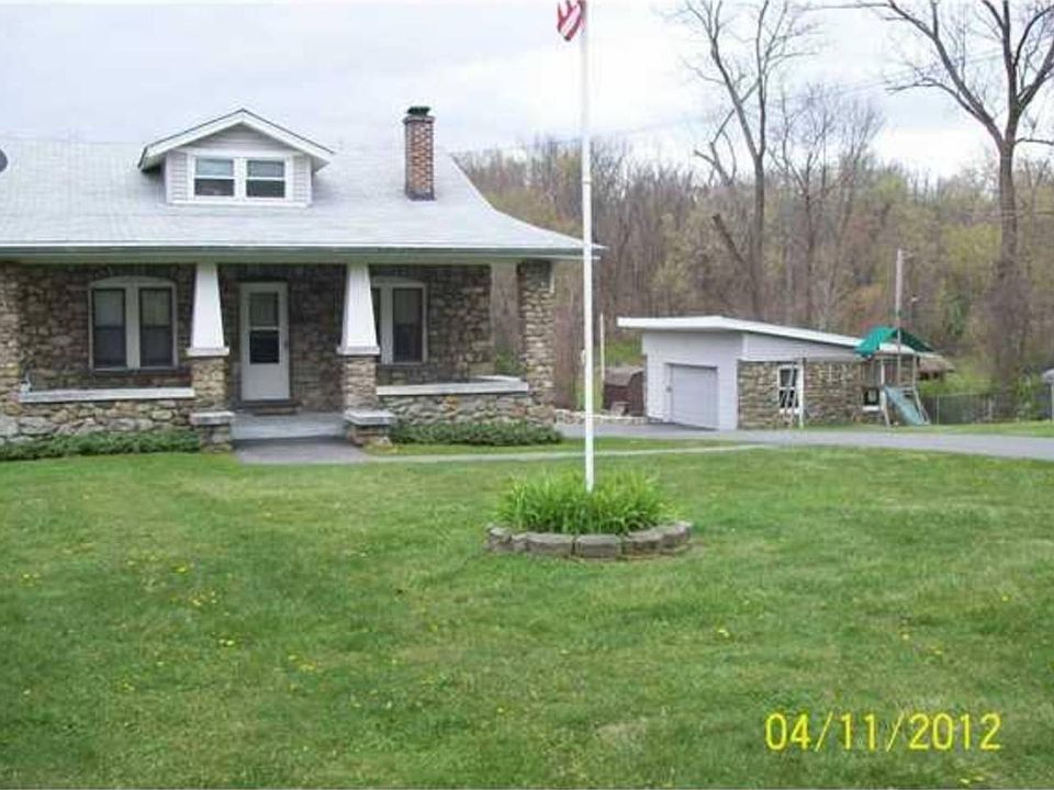 Come take a look at this well built stone home. With some TLC this could be perfect for someone looking to be a first time home buyer or looking to downsize. It offers 2 bedrooms on the first floor and 1 bedroom on the second with a den/office space and 1 bath on the second floor. Has a 3 season porch on the back looking at the inground pool. Has a fully unfinished basement for plenty of storage. Also has a two car detached garage. It is close to shopping and transportation. Property being sold "as-is". Condition of pool is unknown - Seller will not complete any work items or give credit for any.