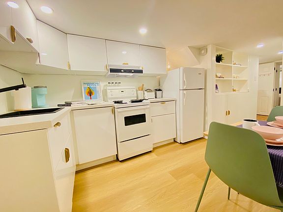 Listing description Introducing a gorgeous and newly-finished and furnished getaway for your whole family to stay for a month or more! Work, play, relax and explore all the city has to offer in this stylish and cozy lower-level gem. Located in the vibrant Wallace-Emerson neighbourhood and close to galleries, restaurants, breweries, cafes, parks, subway and UP Express. We can't wait to host you! The space Features 2 spacious bedrooms (queen, twin trundle bed), comfortable living area with luxury pullout couch (queen), 4-piece bathroom with bathtub and shower, work space, full updated kitchen, great privacy, and all of the comforts of home. This is our family home and we live upstairs. Heads up! This is a basement suite with 6'6 (198cm) ceilings. We love tall people, but this may not be ideal for you. **Please note that as part of this home renovation, the exterior has yet to be finished and is currently in the "open-concept" phase ;). In the coming weeks, we will be adding fencing and hardscaping, but in the meantime, there is a plywood pathway leading to the private entrance. If you are okay with staying with the exterior in this "raw" state, we welcome you! Guest access Your guest suite has its own separate entrance at the back of the house. You can expect a welcome package on arrival and easy keypad entry. Fee includes all utilities (heat, water, hydro) as well as wifi, AppleTV (Netflix, Disney+, Prime, TSN, Sportsnet) There are no pets and no smoking permitted. Paid street parking is available upon request. Just let us know and we'll set you up. **cost is $16.81/24hr, $25.22/48hrs, and $38.86/7 days (all CAD) is per the city of Toronto website