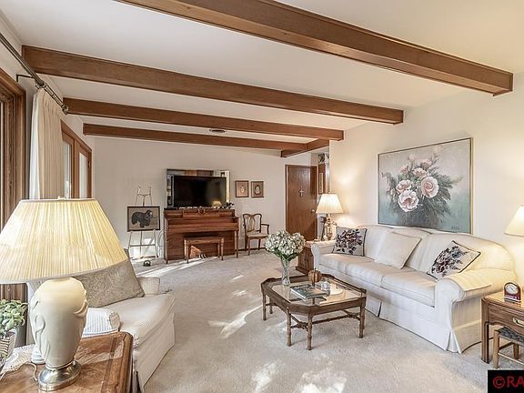 Nestled in a beautiful setting of upper North Mankato, this 4-bedroom, 4-bathroom rambler offers serene views of the Minnesota River and Land of Memories Park right from your private backyard. The main level welcomes you with a spacious living room featuring a wood-burning fireplace, flanked by built-in shelving and a beamed ceiling. Enjoy seamless indoor-outdoor living with access to a large deck that overlooks the stunning river backdrop. Adjacent to the living room, a vaulted 3-season sunroom offers the perfect spot to relax with its own access to the deck. The kitchen and dining area provide ample cabinetry and convenient access to the front entrance and coat closet. The main level also includes a full bathroom and three comfortable bedrooms, one of which features a private half bath for added convenience. The walk-out lower level extends your living space with a generous family room, complete with another wood-burning fireplace and charming beamed ceiling. The fourth bedroom on this level also boasts a beamed ceiling and a private 3/4 bathroom. Additional features of the lower level include storage rooms, laundry area, and a kitchenette. This home offers a rare opportunity to enjoy both nature and comfort, with its incredible secluded location, thoughtful layout, and abundant living spaces. Don’t miss out on this unique property—schedule your showing today!