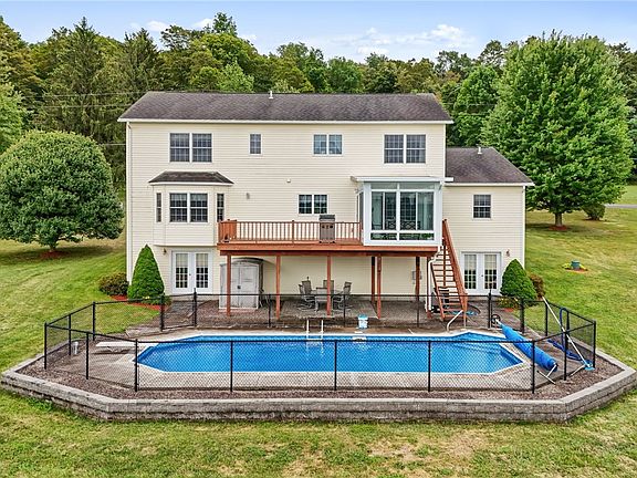 A market debut featuring this 4,000+ square foot haven! With five bedrooms, three and a half baths, and three levels brimming with opportunities for joyful living and unforgettable moments, this home, built in 2002, is set for you to unlock its doors and start a new adventure. Inside, a grand eat-in kitchen awaits, complete with a central island perfect for culinary creativity and lively conversations, alongside a walk-in pantry just waiting to be stocked. For those serious tasks, there's a dedicated office, a half bath, and a handy garage entry. Special gatherings can be enjoyed in the formal dining room, a cozy sitting room, and a welcoming family room. Upstairs, you'll find a peaceful retreat in any of the four bedrooms, complemented by two full bathrooms. Meanwhile, the finished basement is a 1,000 square foot oasis designed for entertaining, boasting a fifth bedroom, an additional full bathroom, and direct access to the in-ground pool and backyard fun. Don't overlook the stunning sunroom off the kitchen, leading to a spacious 300 square foot deck. The paved driveway and 2-car garage are just the cherry on this gorgeous home, all situated on a generous 1.5 acres. Ask your agent about the opportunity to purchase the additional 1.5 acres available next door to expand your possibilities!